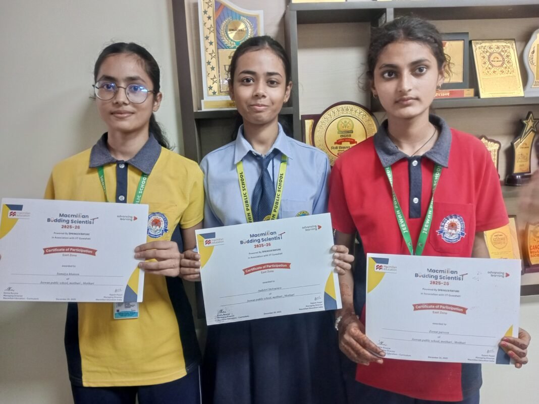 मोतिहारी: शहर के चांदमारी स्थित जीवन पब्लिक स्कूल में आयोजित वार्षिक परिणाम समारोह इस वर्ष अत्यंत गौरवपूर्ण और प्रेरणादायक वातावरण में संपन्न हुआ। समारोह का मुख्य आकर्षण कक्षा आठवीं के तीन मेधावी छात्रों—आदिश्री श्रीवास्तव, सुमैया खातून एवं जीनत परवीन—को उनके अभिनव “फायर अलार्म सिस्टम” प्रोजेक्ट के लिए विशेष सम्मान प्रदान किया जाना रहा। इन छात्रों द्वारा तैयार किया गया यह प्रोजेक्ट देश के प्रतिष्ठित तकनीकी संस्थान Indian Institute of Technology Guwahati में चयनित हुआ है, जो विद्यालय और पूरे उत्तर बिहार के लिए अत्यंत गर्व का विषय बन गया है।