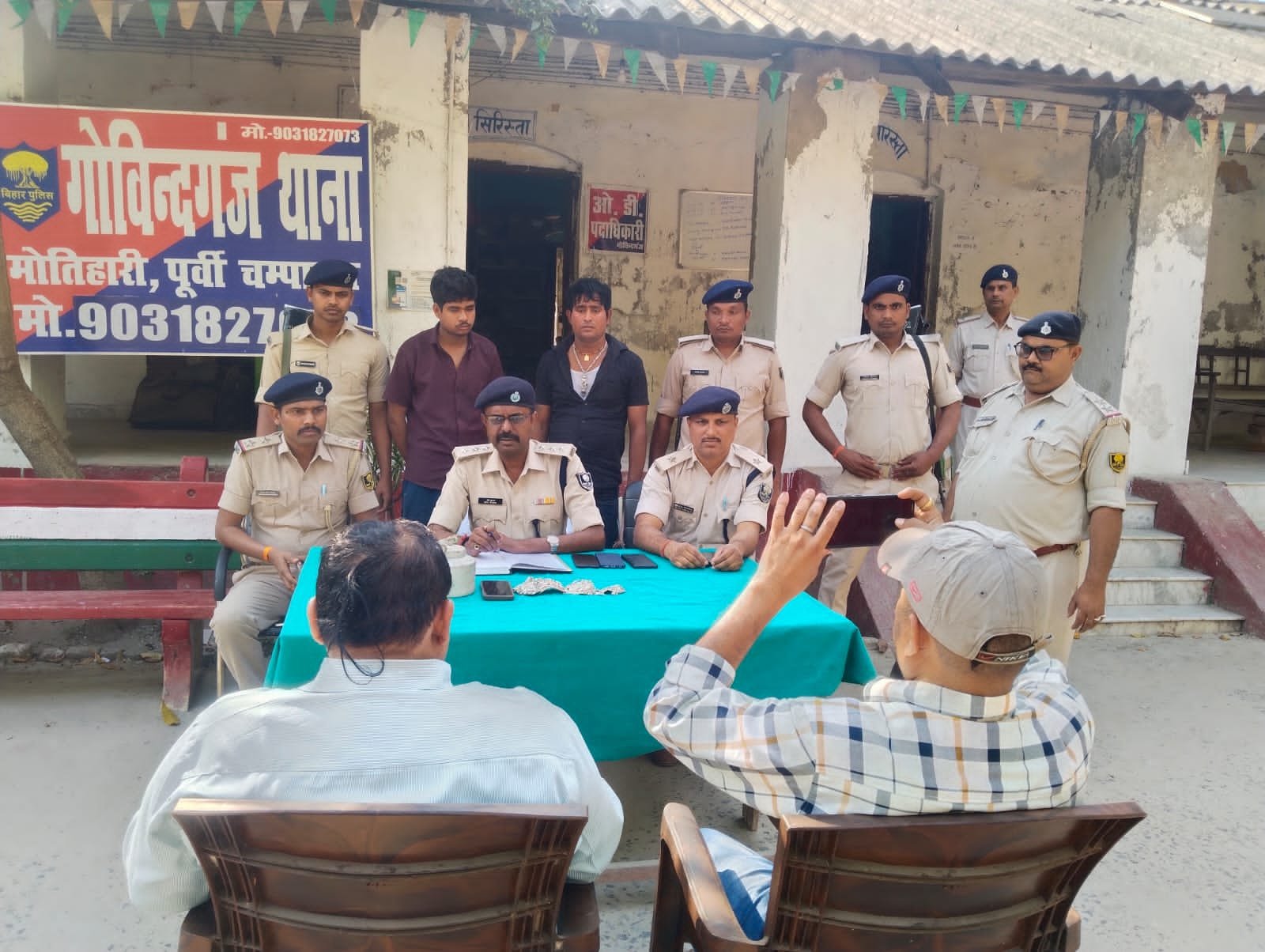 गोविंदगंज पुलिस ने हनुमान मंदिर से भगवान का मुकुट चोरी करने के मामले में बड़ी सफलता हासिल की है। एस डी पीओ रवि कुमार के नेतृत्व और  गोविंदगंज थानाध्यक्ष राजू मिश्रा की सक्रियता से पुलिस ने इस मामले का सफल उद्भेदन करते हुए दो अभियुक्तों को गिरफ्तार किया है। घटना कल बीते रात की है, जब झखरा वार्ड नंबर-1 स्थित हनुमान मंदिर से भगवान का मुकुट चोरी होने का मामला प्रकाश में आया था।