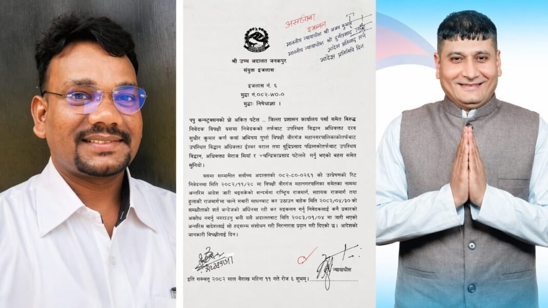 बीरगंज महानगरपालिका ने 8 करोड़ 61 लाख रुपये में पप्पू कन्स्ट्रक्शन को 17 अगस्त 2025 से 16 जुलाई 2026 तक के लिए वाहन कर संग्रह का ठेका दिया था। इसी विषय को लेकर कंपनी के प्रोप्राइटर अंकित पटेल ने जिला प्रशासन कार्यालय पर्सा समेत को विपक्षी बनाते हुए निषेधाज्ञा की मांग के साथ उच्च अदालत में रिट याचिका (रिट नं. 082-WO-0745) दायर की थी।