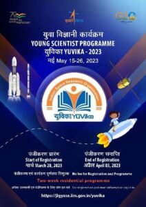 भारतीय अंतरिक्ष अनुसंधान संस्थान (ISRO) स्कूली बच्चों के लिए “युवा वैज्ञानिक कार्यक्रम”, YUVIKA नामक एक विशेष कार्यक्रम का आयोजन कर रहा है, जो अंतरिक्ष विज्ञान में उभरते रुझानों में युवा छात्रों को अंतरिक्ष प्रौद्योगिकी, अंतरिक्ष विज्ञान और अंतरिक्ष अनुप्रयोगों पर बुनियादी ज्ञान प्रदान करने के लिए है।