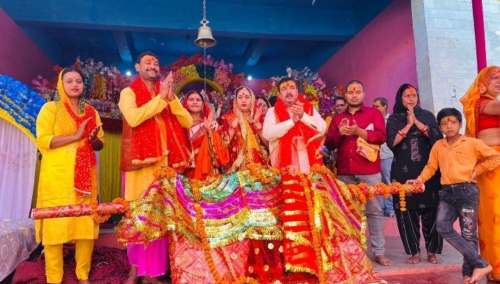 वहीं आज बनारसी आचार्य दयाशंकर पंडित एवं पंडित प्रवेश पाठक ने पूर्व निर्धारित समय अनुसार यजमान समाजसेवी रंजना जी, वरिष्ठ पत्रकार राजन द्विवेदी एवं यजमान समाजसेवी शिव कुमार गुप्ता जी से वैदिक मंत्रों से डोली की पूजा अर्चना करते हुए सजवाया। उसके बाद सैकड़ों भक्त माता की डोली लेकर बेलही देवी मंदिर पहुंचे और माता की पूजा अर्चना करते हुए माता को डोली में बिठा कर बलुआ चौक शक्ति धाम नवरात्र महायज्ञ मंडप में विधि विधान से विराजमान कराया। जिसके बाद माता का पट खुला और यजमान रंजना देवी सहित महिला भक्तों ने मां को सिंदुर चढ़ाते हुए श्रंगार किया। वहीं संध्या आरती के उपरांत सभी भक्तों के माता को चढ़ाएं गए सिंदुर, द्रव्य ( सिक्का) , पुष्प एवं नैवेद्य को यजमान समाजसेवी राजन द्विवेदी ने सभी माता भक्तों को आशीर्वाद स्वरूप वितरण किया। वहीं बलुआ दुर्गा पूजा समिति ने भी विशिष्ट प्रसाद का वितरण किया। मौके पर बलुआ दुर्गा पूजा समिति के सचिव शिव कुमार गुप्ता, कार्यकारी अध्यक्ष दिवाकर मणि त्रिपाठी, उपाध्यक्ष विनोद विकल, कोषाध्यक्ष प्रदीप कुमार, दिलीप प्रसाद, राजू पटेल, महावीर पासवान, उप कोषाध्यक्ष सूरज कुमार आदि समिति के सभी सदस्य मौजूद थे।