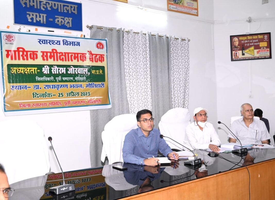 मोतिहारी जिले में सौरभ जोरवाल जिलाधिकारी की अध्यक्षता में स्वास्थ्य विभाग की समीक्ष्मात्मक बैठक समाहरणालय स्थित सभागार भवन, मे आयोजित की गयी। जिलाधिकारी कि अध्यक्षता में स्वास्थ्य विभाग के सिविल सर्जन मौजूद थे