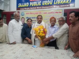 बेतिया सज्जाद पब्लिक उर्दू लाइब्रेरी के द्वारा विधान पार्षद आफाक हैदर को किया गया सम्मानित