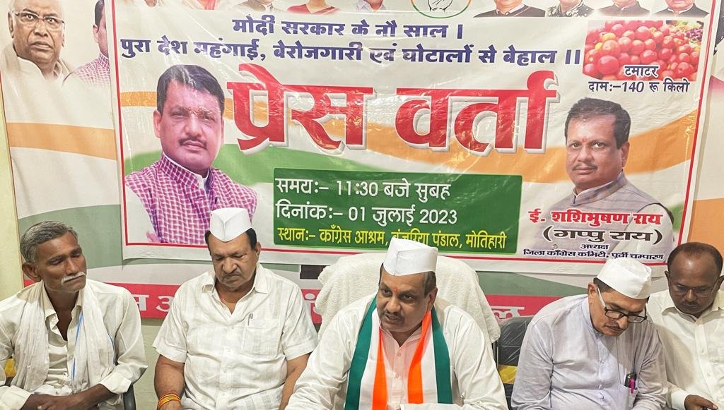 मोतिहारी जिला  कांग्रेस  अध्यक्ष, ई0 शशिभूषण राय उर्फ गप्पू राय के नेतृत्व में प्रेस वर्ता का आयोजन किया गया।