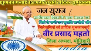 मोतिहारी। जन सुराज जिला कार्यवाहक समिति की बैठक में जिले के सभी प्रखंडों के पदाधिकारियों को वार्ड, गांव,बूथ और पंचायत स्तर पर संगठन को सशक्त बनाने में सक्रिय भूमिका निभाने का निर्देश दिया गया। उक्त जानकारी देते हुए जिला संगठन प्रभारी और जन सुराज के पर्यवेक्षक ए के द्विवेदी ने पत्रकारों को दी।