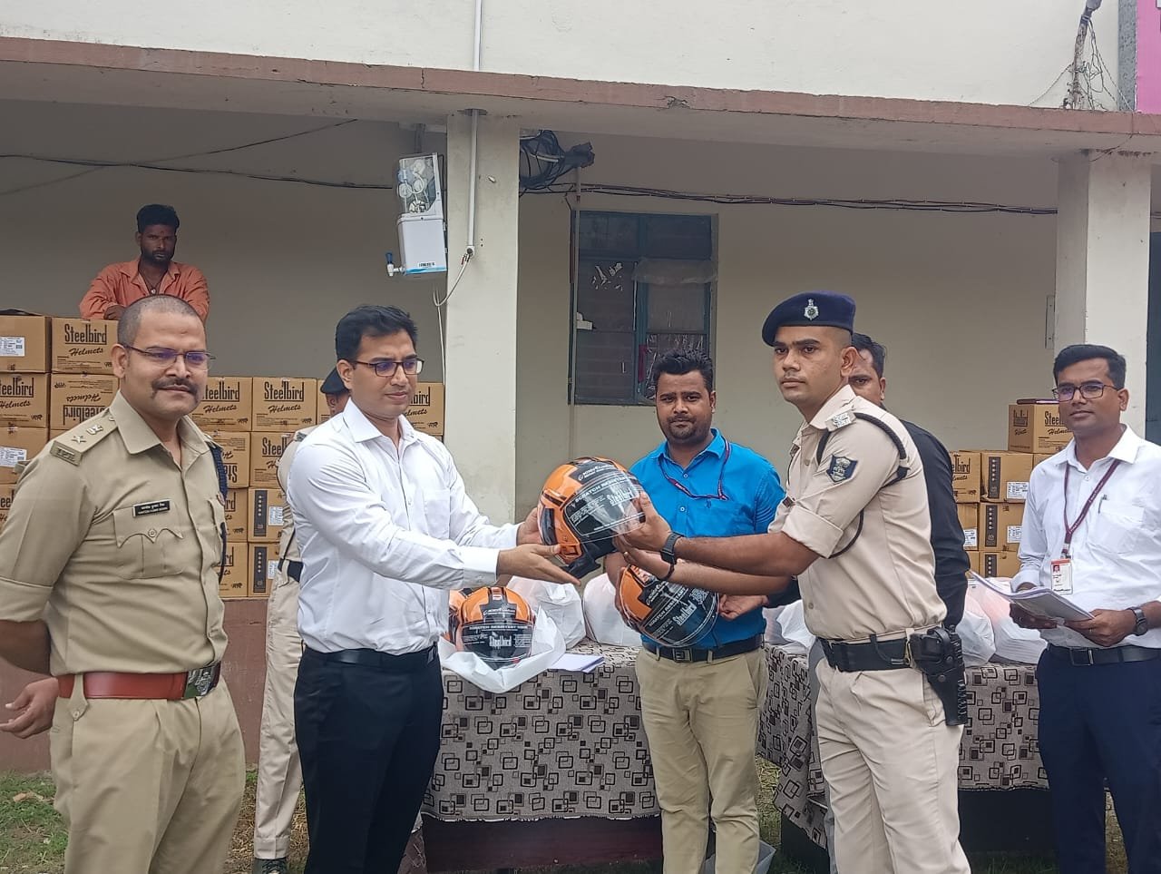 मोतिहारी जिलाधिकारी एवं पुलिस अधीक्षक, द्वारा पुलिस लाइन परिसर ,मोतिहारी में हेलमेट वितरण समारोह का उद्घाटन किया गया ।