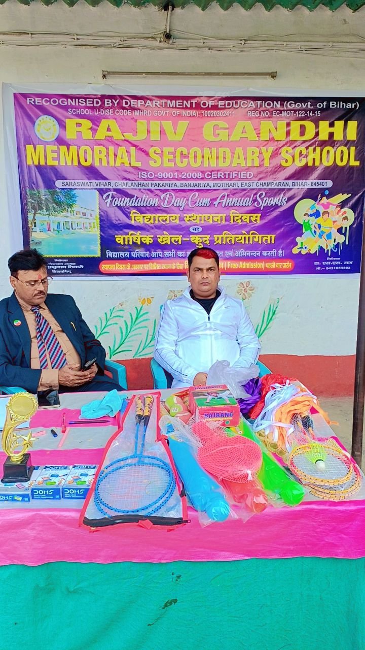 आज 21वीं स्थापना दिवस सह वार्षिक खेल कूद प्रतियोगिता का आयोजन किया गया l जो भारत सरकार की फिट इंडिया मूवमेंट और खेलो इंडिया कार्यकर्म को ध्यान में रखते हुए किया गया l जिसमे 100 मीटर मैराथन रेस , पजल रेस , जिग जैग रेस , स्लो साईकिल रेस , 🥄 स्पून रेस , कबड्डी प्रतियोगिता (छात्र) , कबड्डी छात्रा, बैडमिंटन , म्यूजिकल चेयर , पेयर रेस , बाधा दौड़ इत्यादि खेल कूद प्रतियोगिता के साथ मोतिहारी के गांधी मैदान में T-10 क्रिकेट प्रतियोगिता आयोजित किया गया l जहां टीम A के लड़के खिलाड़ियों के कप्तान मो. तौसीफ आलम की अगुयाई में 6 विकेट से रनर अप टीम के कप्तान सत्यार्थ तिवारी के टीम को हराया l मैन ऑफ द मैच का पुरस्कार हिमांशु कुमार सिंह को मिला और कीपिंग , फील्डिंग और ऑल राउंडर परफॉर्मेंस का पुरस्कार विजयी टीम के आदर्श कुमार को मिला l कबड्डी प्रतियोगिता छात्रा टीम की कप्तान समृद्धि तिवारी की टीम ने बाजी मारी l वही प्रथम /द्वितीय एवम तृतीय पुरस्कार से अन्य खेल में छात्र छात्राओं को गोल्ड , सिल्वर एवम ब्रॉन्ज मेडल के साथ सभी को पुरस्कार के तौर पर खेल कूद सामग्री सहित अन्य पुरस्कार बच्चों को विद्यालय के निदेशक डॉ एस एस राज , वरीय शिक्षक आर एन सिंह , सूरज पाठक , रौशन आर्या , विक्की कुमार , पंकज सिन्हा एवम नीलम सिन्हा, मनीषा कुमारी , अनीशा कुमारी, प्रियंका कुमारी एवम अंजलि सिंह द्वारा मेडल दिया गया l इसमें मैच रेफरी की भूमिका में पंकज सिन्हा , अंजली सिंह एवम प्रोग्राम कॉर्डिनेटर के तौर पर नीलम सिन्हा मनीषा कुमारी एवम गांधी मैदान में क्रिकेट टूर्नामेंट की देख रेख वरीय शिक्षक सूरज पाठक, रौशन आर्या एवम विक्की कुमार के सफल निर्देशन में संचालित हुआ l एस कार्यकर्म में बिहार स्टेट पावर कॉर्पोरेशन के रिटायर्ड सचिव मुरारी प्रसाद श्रीवास्तव उपस्थित थे l साथ ही विद्यालय की पूर्वार्ति छात्रा नेहा प्रभात DMRD (रेडियोलॉजिस्ट) अपने बेटे के साथ उपस्थित थी l इस अवसर पर अभिभावक के तौर पर भूषण कुमार , राजेश राम , विकाश कुमार सिंह , मेराज अंसारी आदि कई अभिभावक एवम बच्चों के माता पिता उपस्थित हुए l