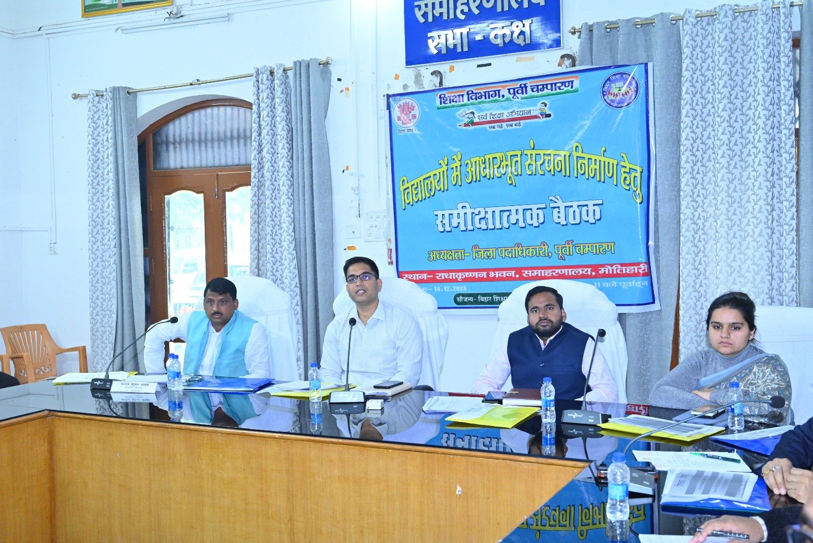 ,मोतिहारी  जिलाधिकारी,  की अध्यक्षता में बिहार शिक्षा परियोजना, पूर्वी चंपारण अंतर्गत जिला के प्राथमिक, मध्य एवं माध्यमिक/ उच्चतर माध्यमिक विद्यालयों में यथावश्यक नए भवन निर्माण, लघु /वृहद मरम्मती, अतिरिक्त वर्ग कक्ष निर्माण आदि की आवश्यकता अनुसार आधारभूत संरचना निर्माण की समीक्षा की गई ।