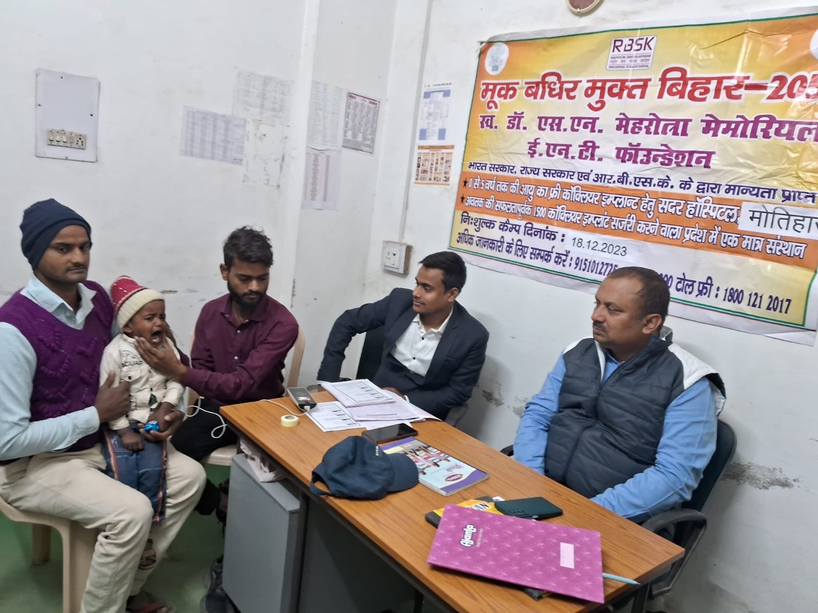मौके पर आरबीएसके जिला समन्वयक डॉ मनीष कुमार, मेहरोत्रा फाउंडेशन के सचिन कुमार मिश्रा, ऑडियोलॉजिस्ट महेंद्र कुमार, नौशाद अहमद, प्रमोद कुमार, रोहित राज व अन्य स्वास्थ्यकर्मी उपस्थित थे।
