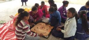 राष्ट्रीय महिला दिवस के अवसर पर, किशोरियों को तीन टीम बनाकर कैरम बोर्ड का खेल खिलाया गया