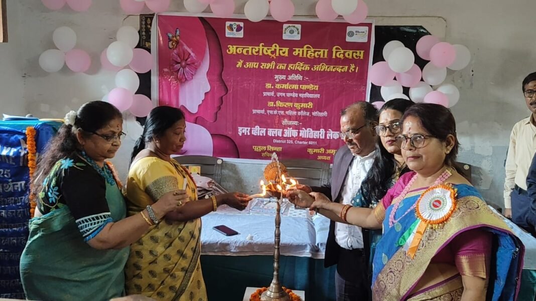 - इनर व्हील क्लब ऑफ मोतिहारी लेक टाउन ने 7 मार्च को अंतर्राष्ट्रीय महिला दिवस के पूर्व संध्या पर शहर स्थित उगम पांडे कॉलेज में अंतर्राष्ट्रीय महिला दिवस मनाया । इनर व्हील मोतिहारी लेक टाउन की ओर से आयोजित इस कार्यक्रम का उद्घाटन अध्यक्ष कुमारी अमृता,चार्टर प्रेसिडेंट संगीता चित्रांश, मुख्य अतिथि प्राचार्या किरण कुमारी, (महिला कॉलेज) एवं प्राचार्य कर्मात्मा पांडे, (उगम पांडे कॉलेज) एवं विनोद तिवारी ने मिलकर दीप प्रज्वलन कर किया।