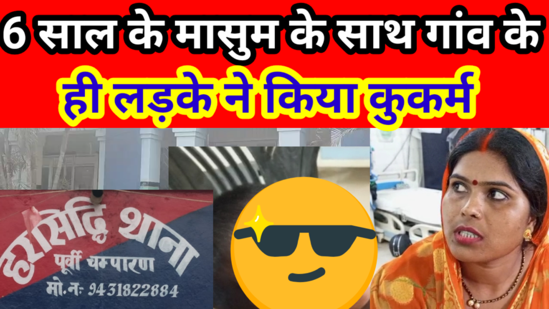 हरसिद्धि थाना क्षेत्र के हरपुर राय मलकौनिया टोला में एक 6 साल के मासूम बच्चे को उसी गाँव के के नाबालिग ने हवस का शिकार बना डाला। घटना एक दिन पहले हुई। आज पीड़ित बच्चे को दर्द की शिकायत होने पर इस घटना का खुलासा हुआ।बच्चे को जिला अस्पताल में भर्ती करवाया गया जहाँ उसकी माँ सरिता देवी ईलाज करा रही हैं वहीं पुलिस देर रात तक एफआईआर दर्ज करने में जुटी थी लेकिन एफआईआर नहीं हुआ है बच्चे के ईलाज में थोड़ी राहत होने पर एफआईआर दर्ज किया जायेगा परिजनों ने कहा परंतु हरसिद्धि थाना हॉस्पिटल पहुँच कर फर्जी बयान दर्ज कर ली है और हरसिद्धि थाना के एस एच ओ ने बताया कि आवेदन मिलने पर करवाई की जाएगी