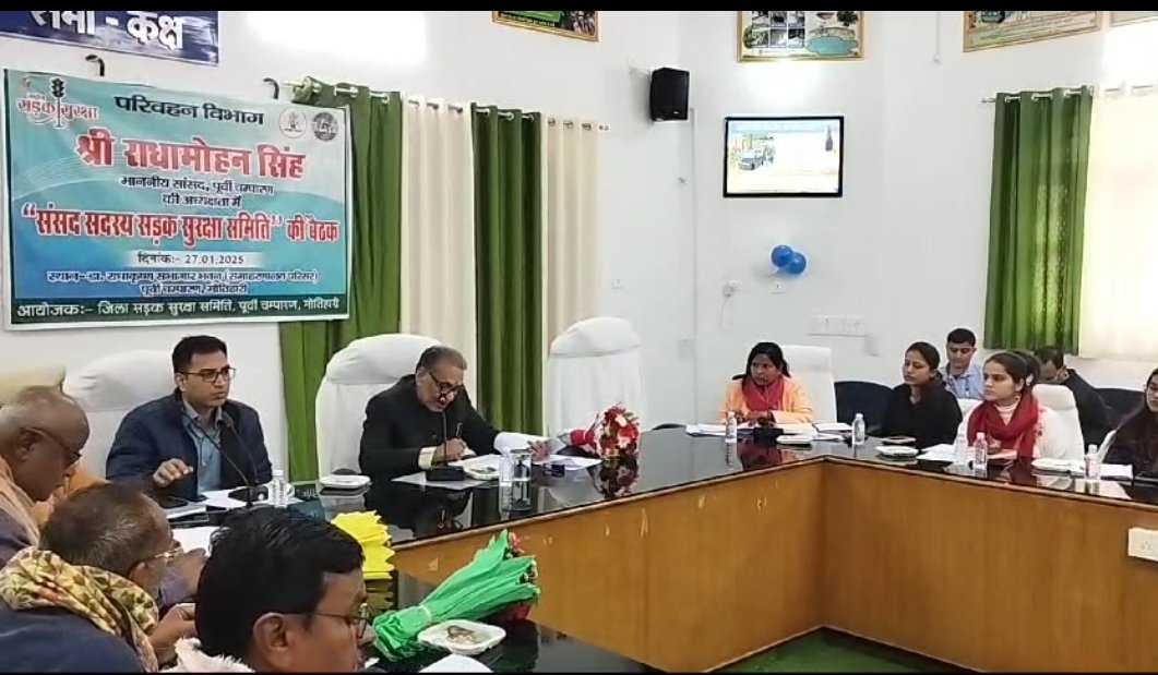 डॉ. राधाकृष्णन सभागार, समाहरणालय मोतिहारी में सोमवार को जिला स्तरीय सड़क सुरक्षा समिति की बैठक का आयोजन किया गया। बैठक की अध्यक्षता माननीय सांसद पूर्वी चंपारण राधा मोहन सिंह ने की। बैठक में जिलाधिकारी  सौरभ जोरवाल, विधायक मोतिहारी  प्रमोद कुमार, विधायक पिपरा  श्याम बाबू प्रसाद यादव, उपमहापौर  लालबाबू गुप्ता, अपर पुलिस अधीक्षक, जिला परिवहन पदाधिकारी सहित अन्य प्रशासनिक और पुलिस अधिकारी उपस्थित रहे।