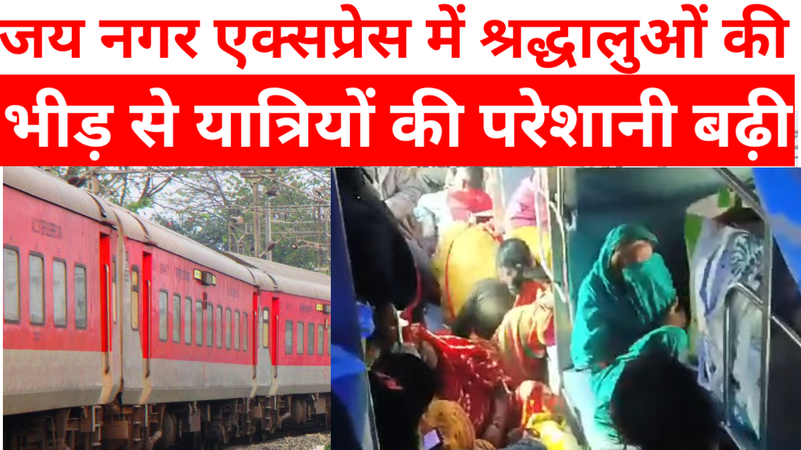 प्रयागराज में आयोजित होने वाले धार्मिक आयोजनों के कारण देश के विभिन्न कोनों से श्रद्धालुओं का हुजूम उमड़ पड़ा है। इसी क्रम में जय नगर एक्सप्रेस (गाड़ी संख्या 11061) में बड़ी संख्या में श्रद्धालु जबरन घुसकर यात्रा कर रहे हैं, जिससे पहले से आरक्षित टिकट पर यात्रा कर रहे यात्रियों को भारी परेशानी का सामना करना पड़ रहा है। यह स्थिति विशेष रूप से एसी कोच (1AC, 2AC, 3AC) में गंभीर रूप से देखी जा रही है, जहां बिना टिकट श्रद्धालु अनधिकृत रूप से घुसकर अपनी जगह बना रहे हैं।