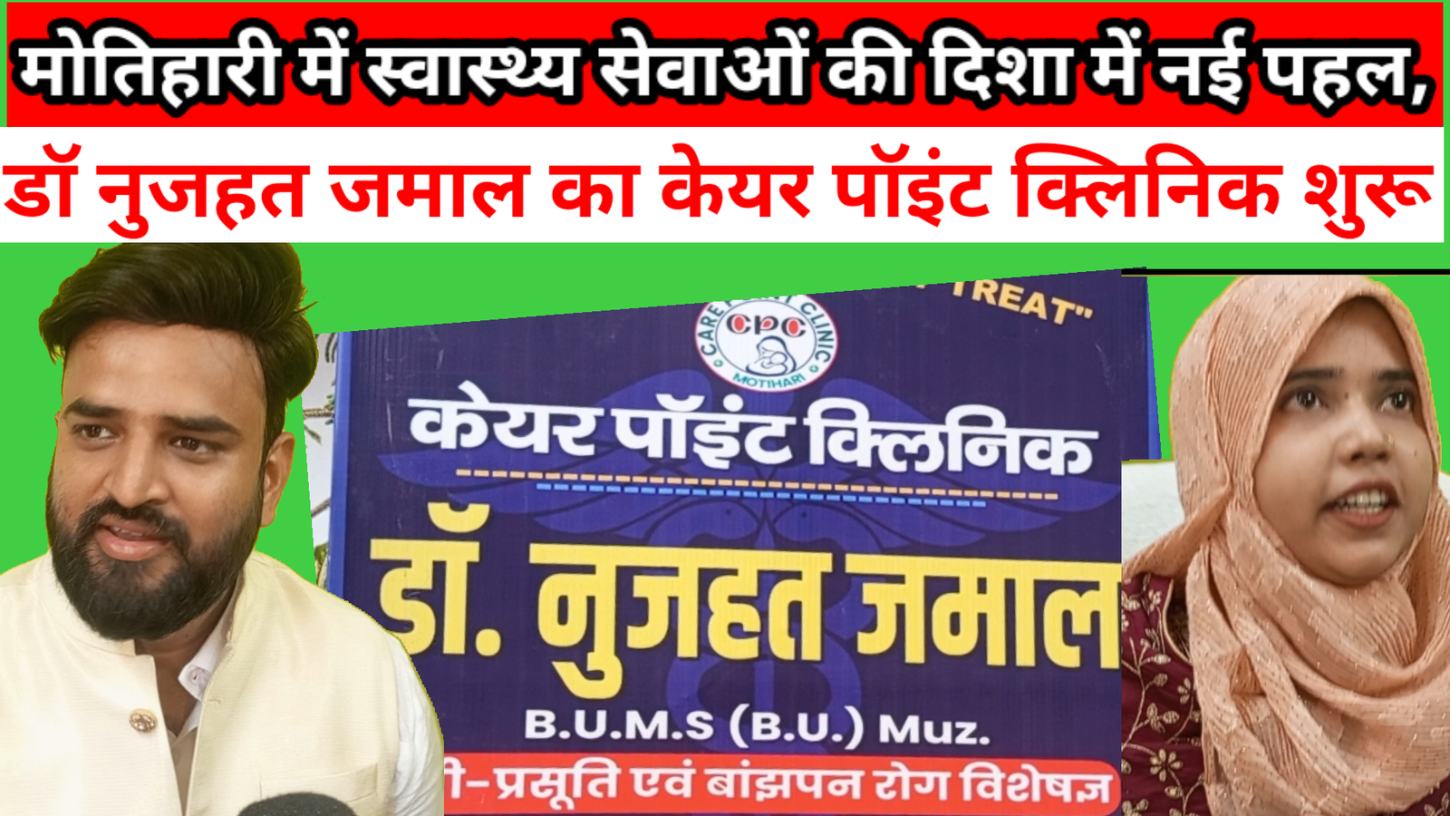 मोतिहारी, 4 मई — पूर्वी चंपारण के मुख्यालय मोतिहारी में स्वास्थ्य सेवाओं को एक नई दिशा देने के उद्देश्य से डॉ नुजहत जमाल द्वारा केयर पॉइंट क्लिनिक की शुरुआत की गई। रविवार को मिस्कॉट मुहल्ले स्थित खादीभंडार के समीप इस क्लिनिक का उद्घाटन बड़े ही सादगीपूर्ण और धार्मिक माहौल में संपन्न हुआ।