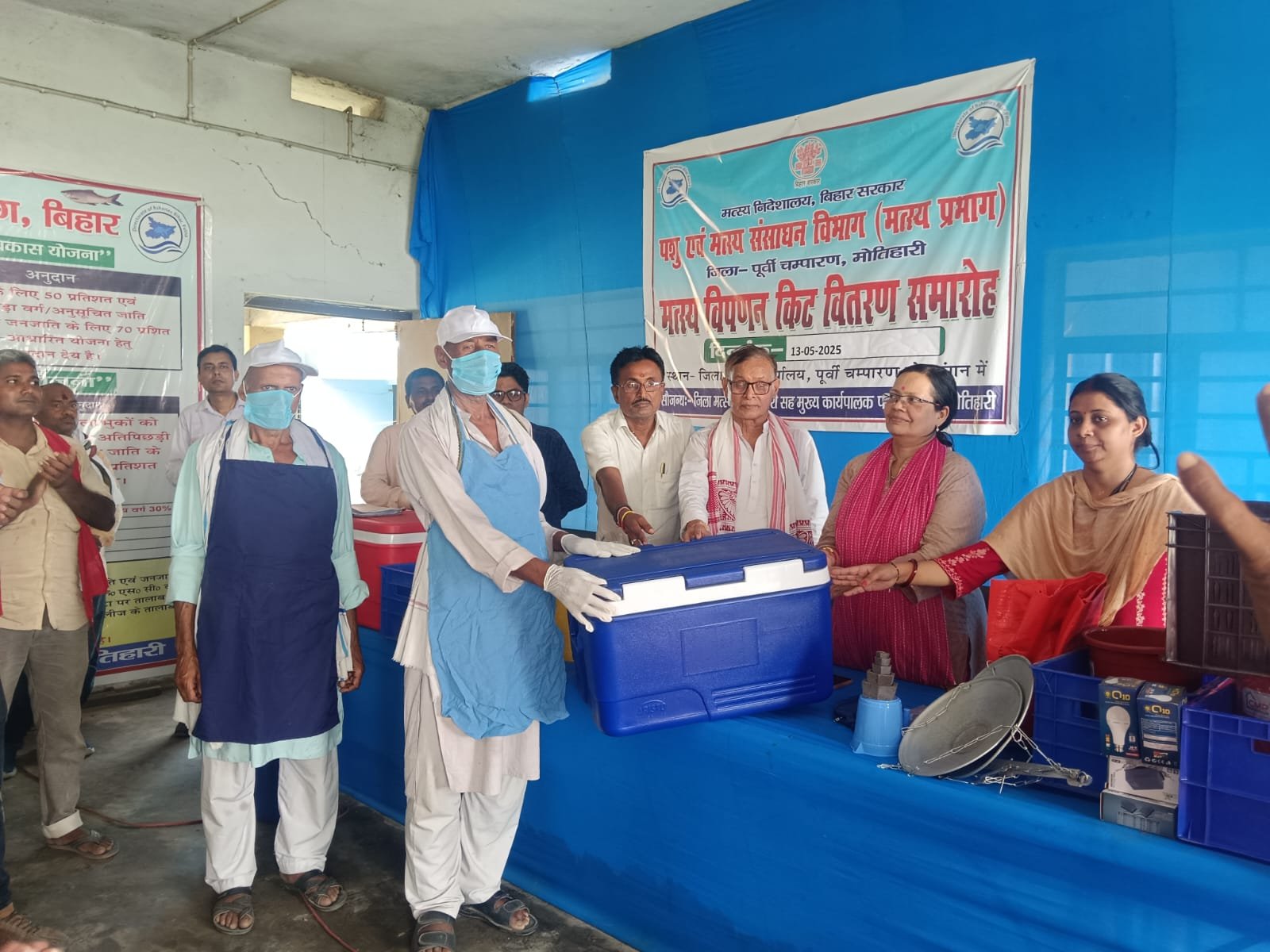 पूर्वी चंपारण, मोतिहारी |   जिला मत्स्य कार्यालय, मोतिहारी परिसर में मुख्यमंत्री मत्स्य विपणन किट (ग्रामीण एवं शहरी) का वितरण कार्यक्रम आयोजित किया गया। इस योजना के अंतर्गत 84 मत्स्य विक्रेताओं को हाईजेनिक विपणन किट प्रदान की गई, जिससे न केवल उपभोक्ताओं तक स्वच्छता से मछली पहुँच सकेगी, बल्कि विक्रेताओं की वार्षिक आय में भी वृद्धि होगी।