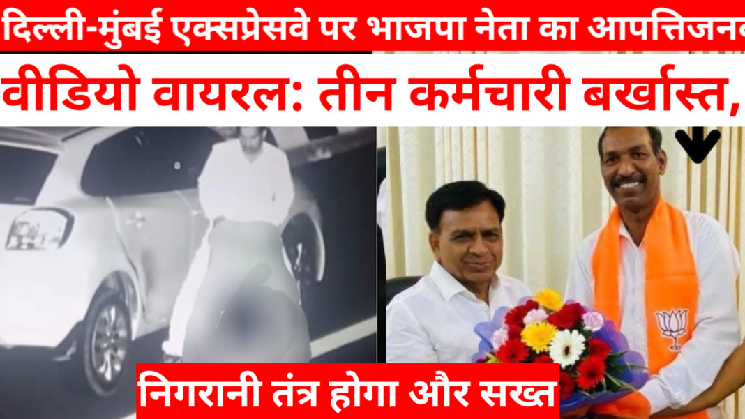 नई दिल्ली/मुंबई। दिल्ली-मुंबई एक्सप्रेसवे पर भाजपा नेता मनोहर धाकड़ का सीसीटीवी कैमरे में कैद हुआ एक आपत्तिजनक वीडियो इन दिनों सोशल मीडिया पर तेज़ी से वायरल हो रहा है। इस मामले ने तब और तूल पकड़ लिया जब खुलासा हुआ कि यह वीडियो एक्सप्रेसवे की निगरानी प्रणाली से लीक हुआ था। ताजा जानकारी के अनुसार, इस संवेदनशील वीडियो को लीक करने में संलिप्त पाए गए तीन कर्मचारियों को तत्काल प्रभाव से नौकरी से बर्खास्त कर दिया गया है।