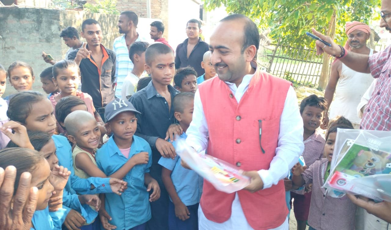 मोतिहारी सांसद राधा मोहन सिंह के जन्मदिन पर जरूरतमंद बच्चों के बीच शैक्षणिक सामग्री का वितरण