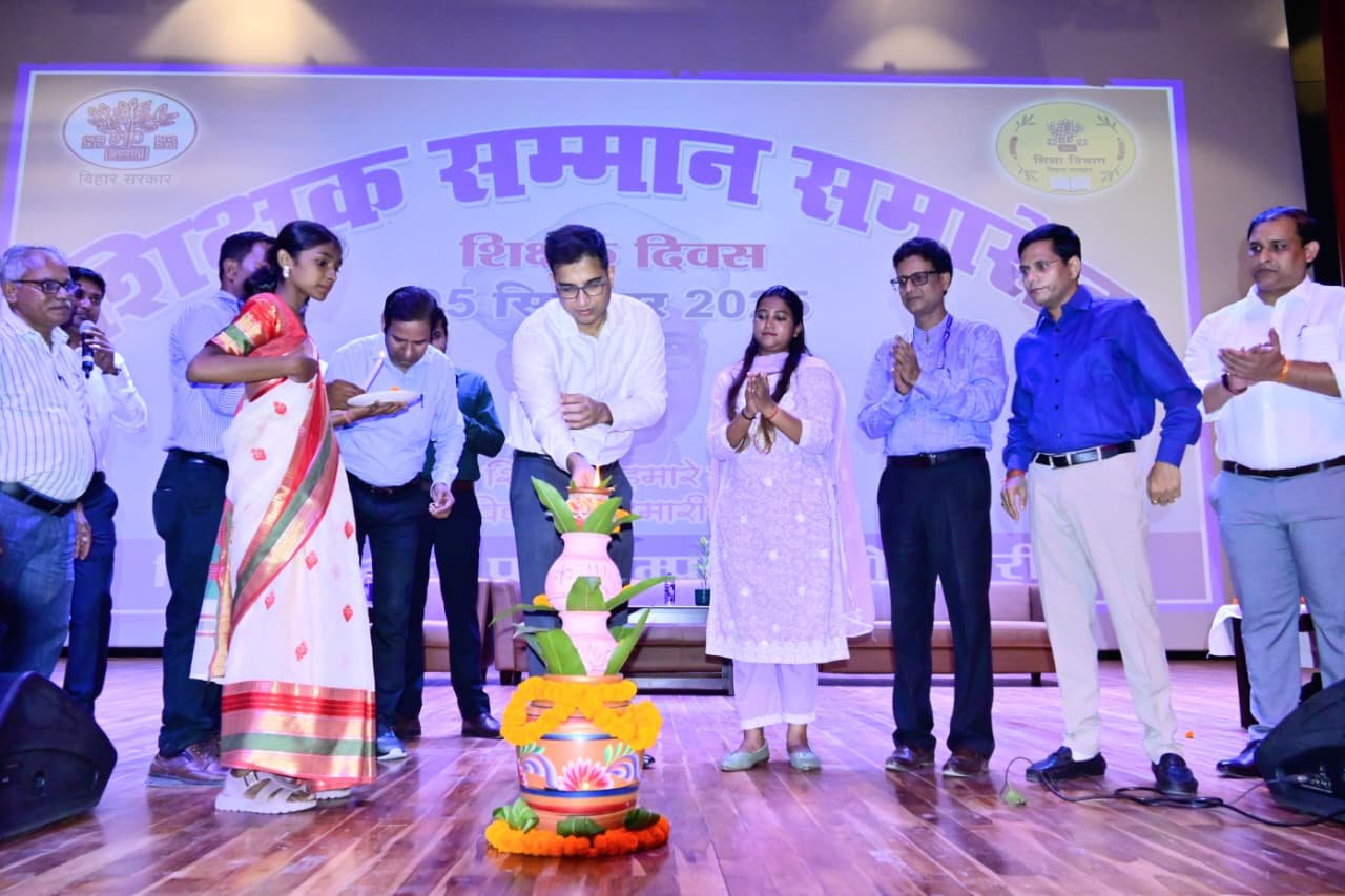 मोतिहारी। शिक्षक दिवस के अवसर पर पूर्वी चंपारण जिला शिक्षा विभाग के सौजन्य से शुक्रवार को महात्मा गांधी प्रेक्षागृह, मोतिहारी में भव्य शिक्षक सम्मान समारोह आयोजित किया गया। इस अवसर पर विभिन्न विधाओं में सराहनीय कार्य करने वाले शिक्षकों को जिलाधिकारी, उप विकास आयुक्त, सदर एसडीओ एवं जिला शिक्षा पदाधिकारी ने संयुक्त रूप से सम्मानित किया।