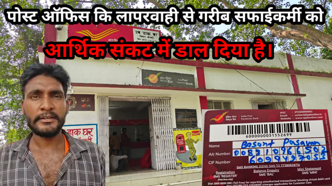 मोतिहारी। हरपुर पंचायत के वार्ड नंबर 10 में लोहिया स्वच्छता अभियान के अंतर्गत सफाई का काम कर रहे बसंत पासवान इन दिनों अपने मेहनताना भुगतान के लिए दर-दर की ठोकरें खा रहे हैं। मामला इंडियन पोस्टल पेमेंट बैंक के खाते से जुड़ा है, जिसमें एक छोटी सी लापरवाही ने गरीब सफाईकर्मी को आर्थिक संकट में डाल दिया है।