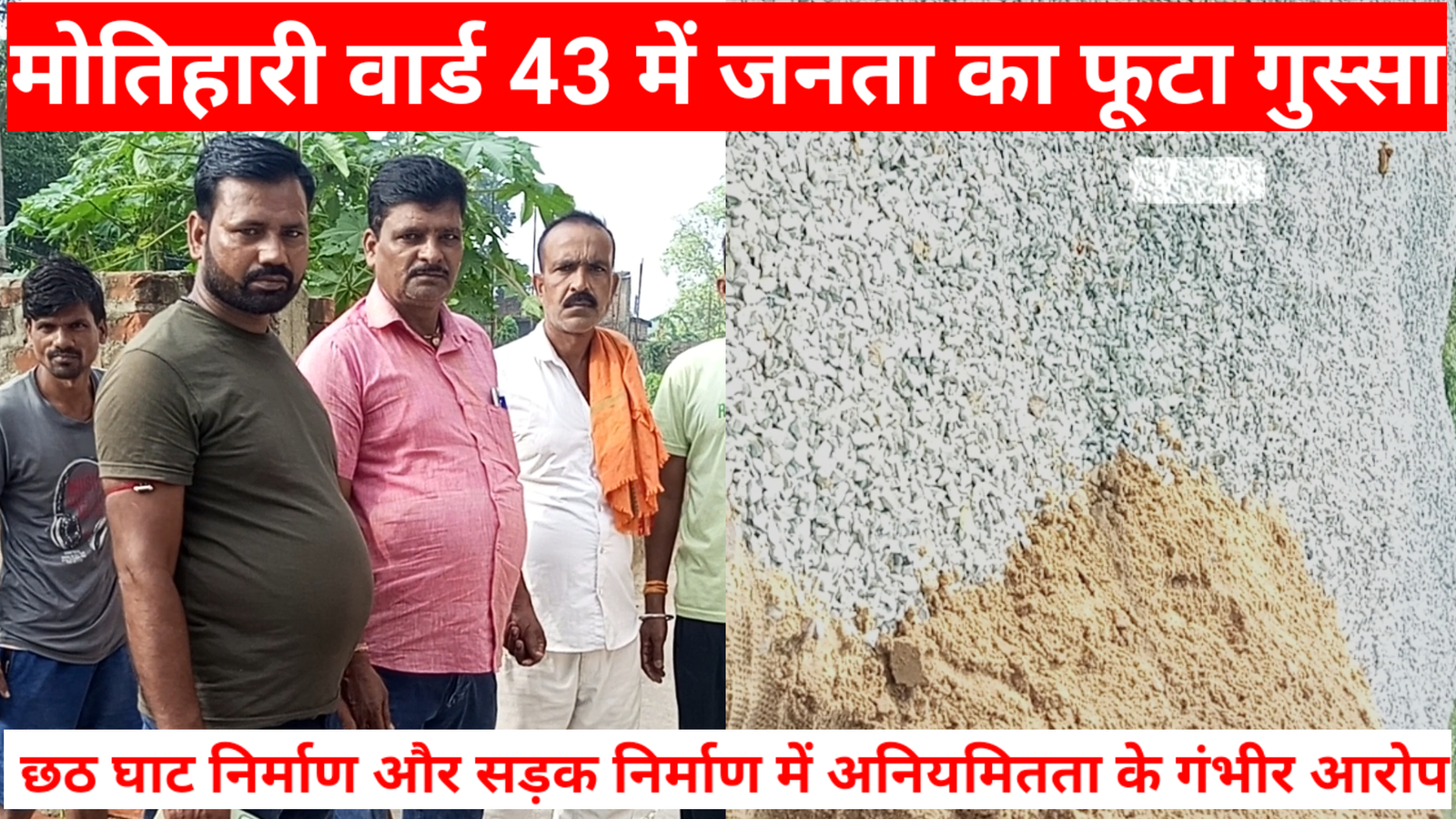 मोतिहारी वार्ड 43 में जनता का फूटा गुस्सा, पार्षद सत्य प्रकाश पर छठ घाट निर्माण और सड़क निर्माण में अनियमितता के गंभीर आरोप