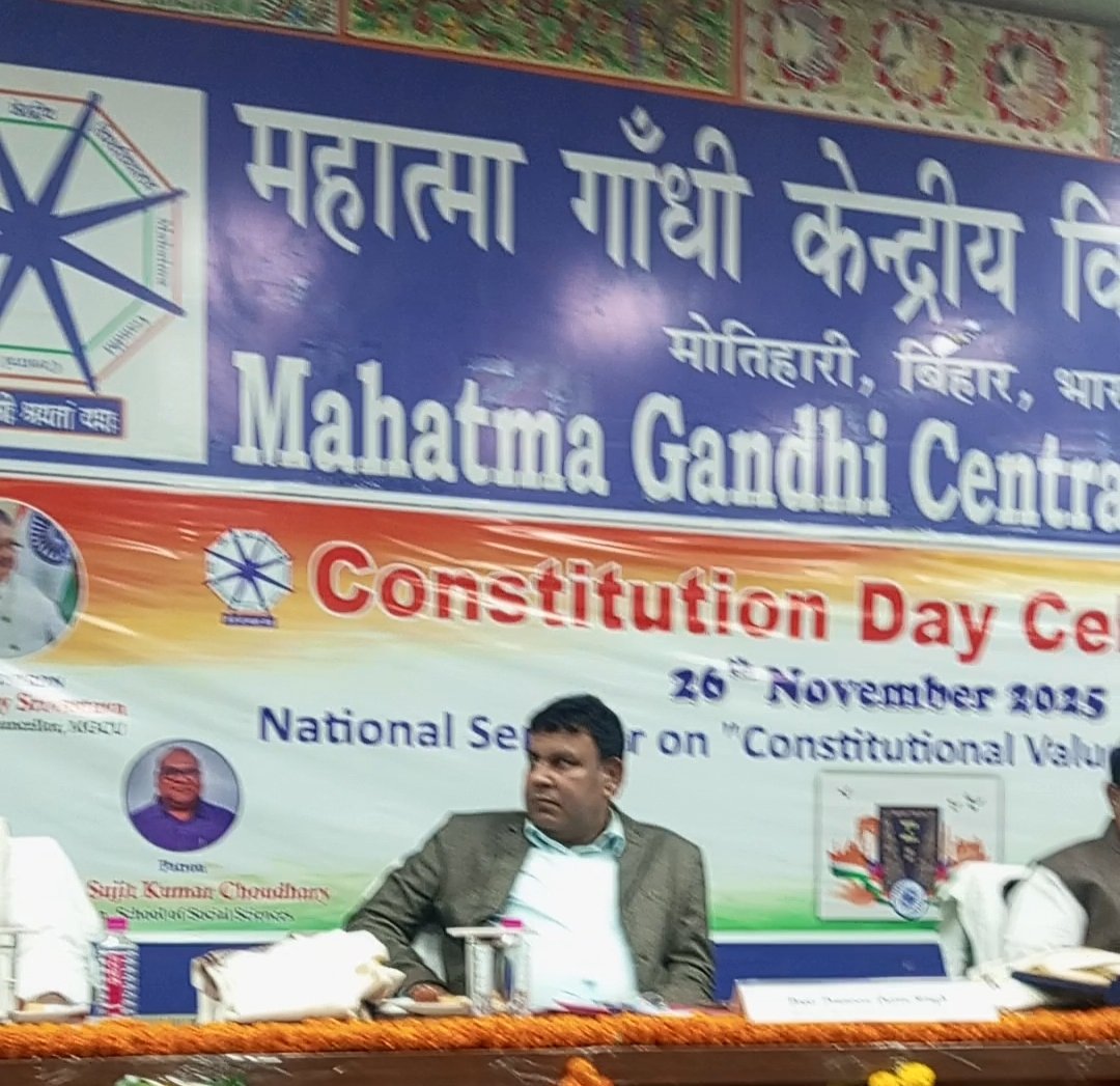 मोतिहारी। संविधान दिवस के अवसर पर महात्मा गांधी केंद्रीय विश्वविद्यालय में एक विचार गोष्ठी का आयोजन किया गया। इस कार्यक्रम में विश्वविद्यालय के शिक्षकों, शोधार्थियों और विद्यार्थियों ने बड़ी संख्या में भाग लिया। गोष्ठी का मुख्य उद्देश्य भारतीय संविधान के मूल सिद्धांतों, उसकी प्रासंगिकता और समय के साथ आवश्यक होने वाले परिवर्तनों पर विमर्श करना था।