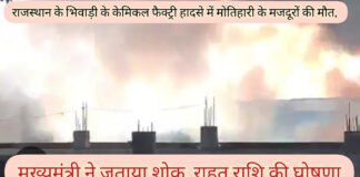 राजस्थान के भिवाड़ी के केमिकल फैक्ट्री हादसे में मोतिहारी के मजदूरों की मौत, मुख्यमंत्री ने जताया शोक, राहत राशि की घोषणा