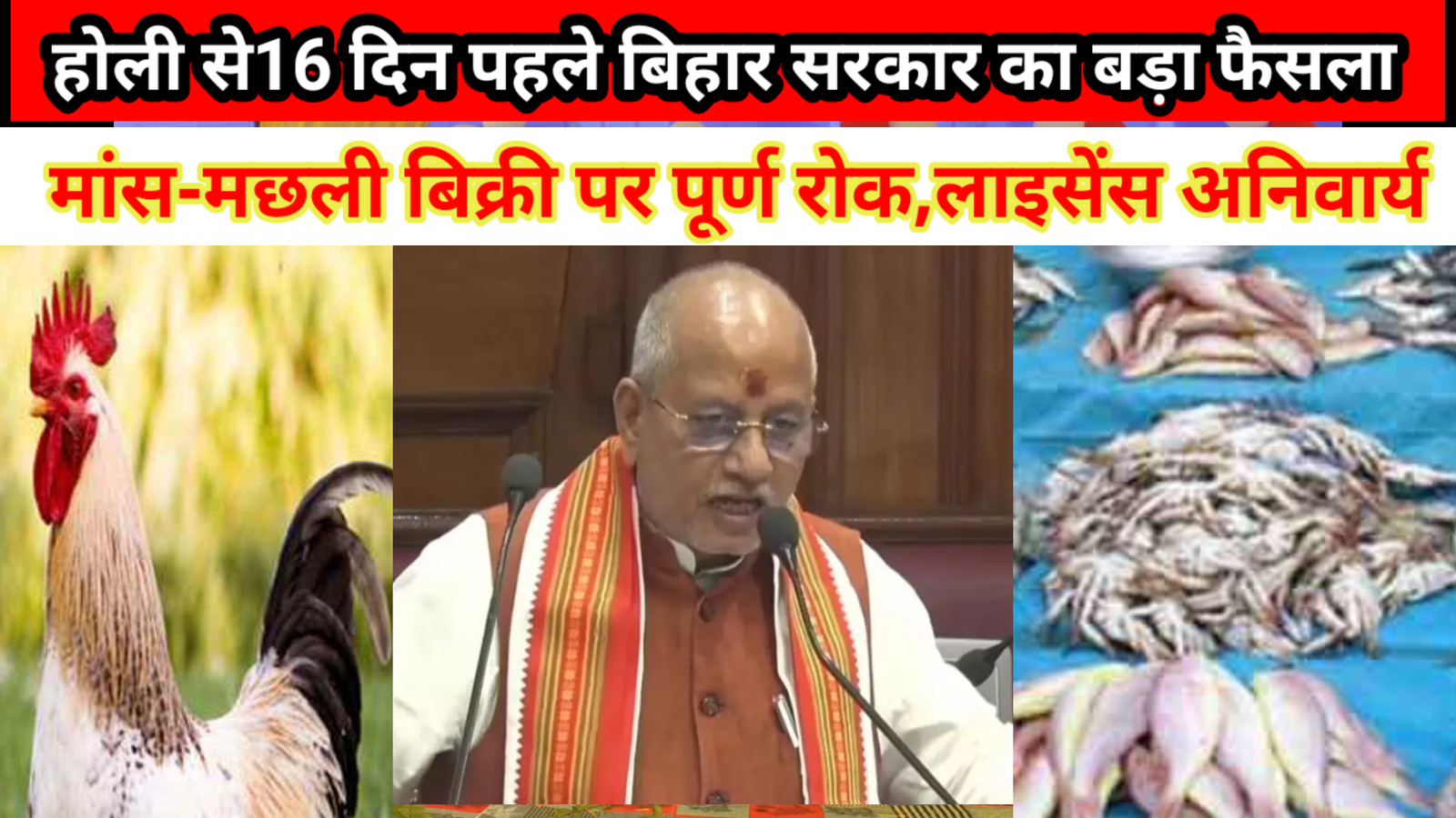 बिहार में होली जैसे महापर्व से लगभग 16 दिन पहले बिहार सरकार ने राज्य के शहरी इलाकों के लिए एक बड़ा और सख्त प्रशासनिक निर्णय लिया है। अब शहरों में खुले में मांस और मछली की बिक्री पर पूरी तरह प्रतिबंध रहेगा। केवल वही दुकानदार मांस-मछली बेच सकेंगे जिनके पास वैध लाइसेंस होगा। बिना लाइसेंस दुकान लगाने या नियमों का उल्लंघन करने वालों के खिलाफ कड़ी कानूनी कार्रवाई की जाएगी।