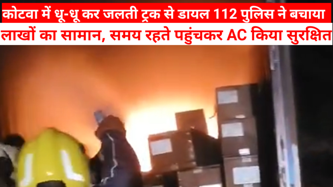 पूर्वी चंपारण जिले के कोटवा थाना क्षेत्र स्थित कदम चौक पर शुक्रवार की अहले सुबह एक बंद बॉडी ट्रक में अचानक आग लग जाने से अफरा-तफरी मच गई। हालांकि डायल 112 की पुलिस टीम की तत्परता और साहसिक प्रयास से ट्रक में लदे लाखों रुपये के सामान को सुरक्षित बाहर निकाल लिया गया।