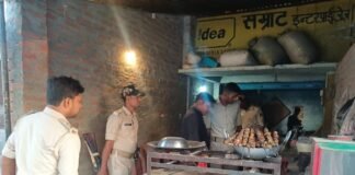 हरसिद्धि गायघाट चौक पर भुजा मीट दुकान में छापेमारी करती उत्पाद पुलिस