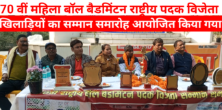 70 वीं महिला बॉल बैडमिंटन राष्ट्रीय पदक विजेता खिलाड़ि का सम्मान समारोह आयोजित किया गया