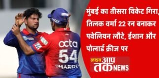 मुंबई का तीसरा विकेट गिरा, तिलक वर्मा 22 रन बनाकर पवेलियन लौटे, ईशान और पोलार्ड...