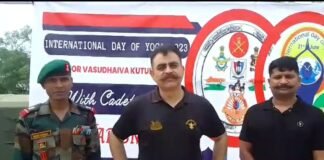 ऐतिहासिक योग दिवस के अवसर पर एनसीसी कैडेटों ने भीष्म बारिश में किया योग