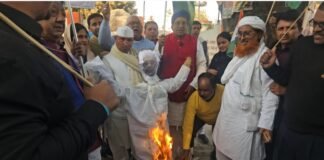 मोतिहारी जिला कांग्रेस कमिटी ने गृह मंत्री का पुतला दहन किया