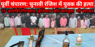 पूर्वी चंपारण: चुनावी रंजिश में युवक की हत्या, 15 आरोपी गिरफ्तार, हथियार और कारतूस बरामद