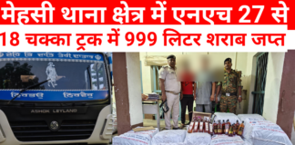 मेहसी थाना क्षेत्र में एनएच 27 से 18 चक्का ट्रक से 999 लीटर विदेशी शराब...