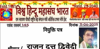 राजन द्विवेदी बने विश्व हिन्दू महासंघ भारत के बिहार प्रदेश मीडिया प्रभारी