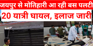 मोतिहारी कोटवा थाना क्षेत्र में बड़ा हादसा: जयपुर से मोतिहारी आ रही बस पलटी, 20...